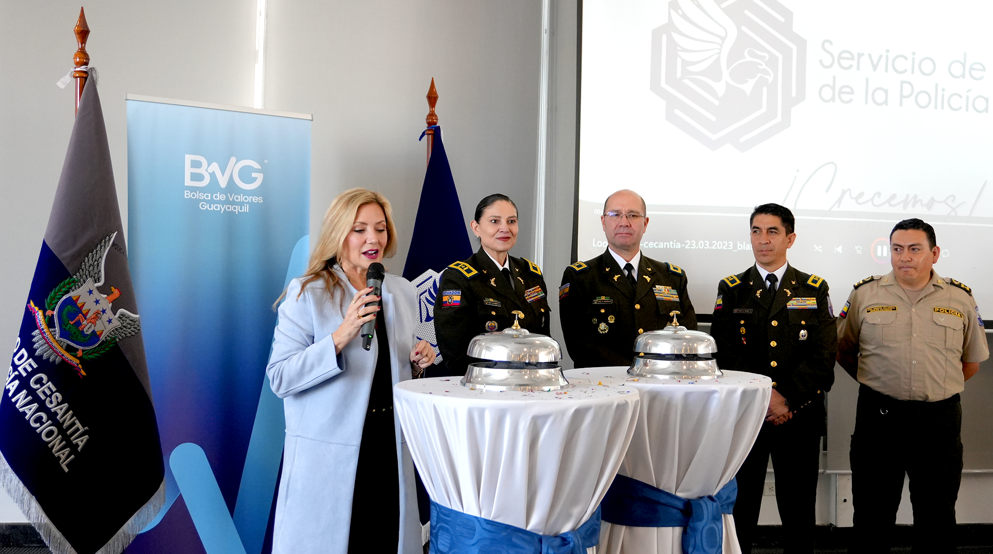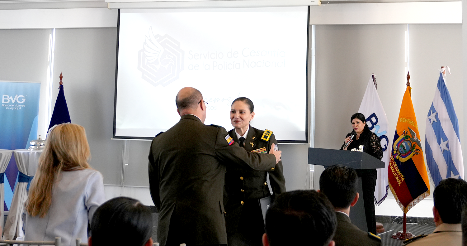 En el marco del Nonagésimo Segundo Toque de Campana, de la Bolsa de Valores de Guayaquil celebrado en el Hotel Dann Carlton, este 24 de julio de 2025 el Servicio de Cesantía de la Policía Nacional fue reconocido oficialmente como inversionista institucional en el mercado de valores ecuatoriano, marcando un nuevo hito en su trayectoria.